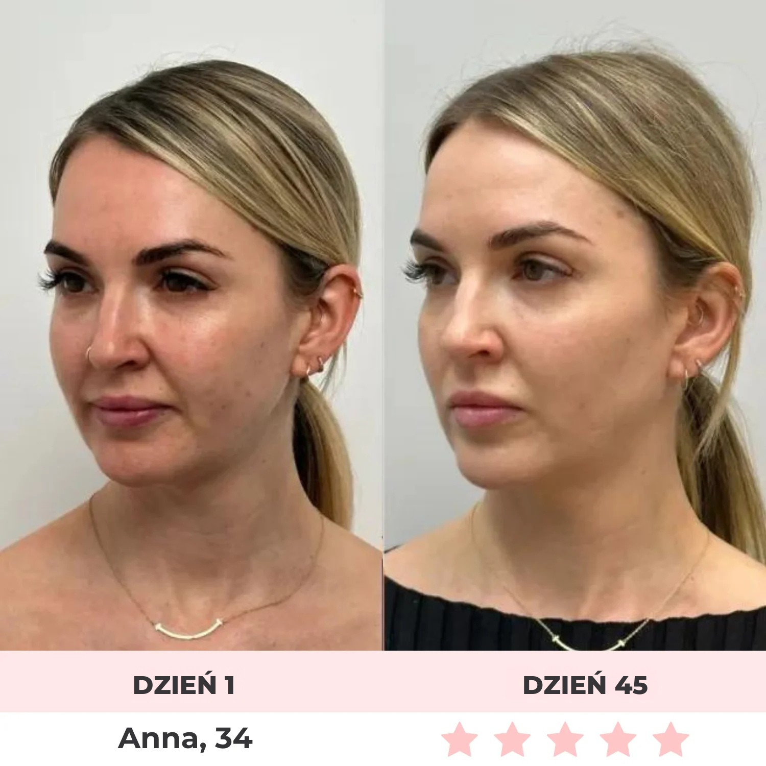 „Byłam sceptyczna, ale moje drobne zmarszczki się spłyciły, a linia żuchwy wygląda na bardziej wymodelowaną. Dostaję tyle komplementów!” – Joanna K.