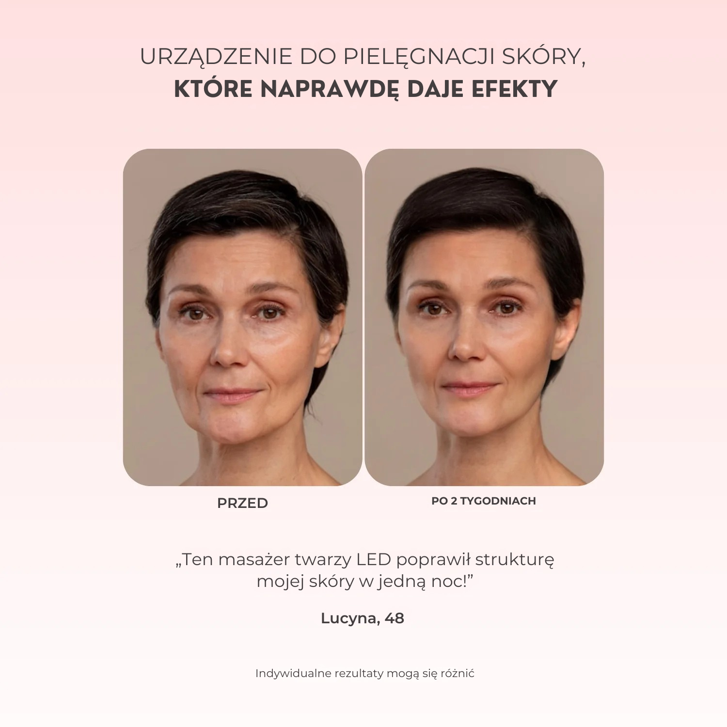 „Moje sera wchłaniają się znacznie lepiej z tym urządzeniem. Skóra jest pełniejsza i bardziej nawilżona!” – Lucyna K.