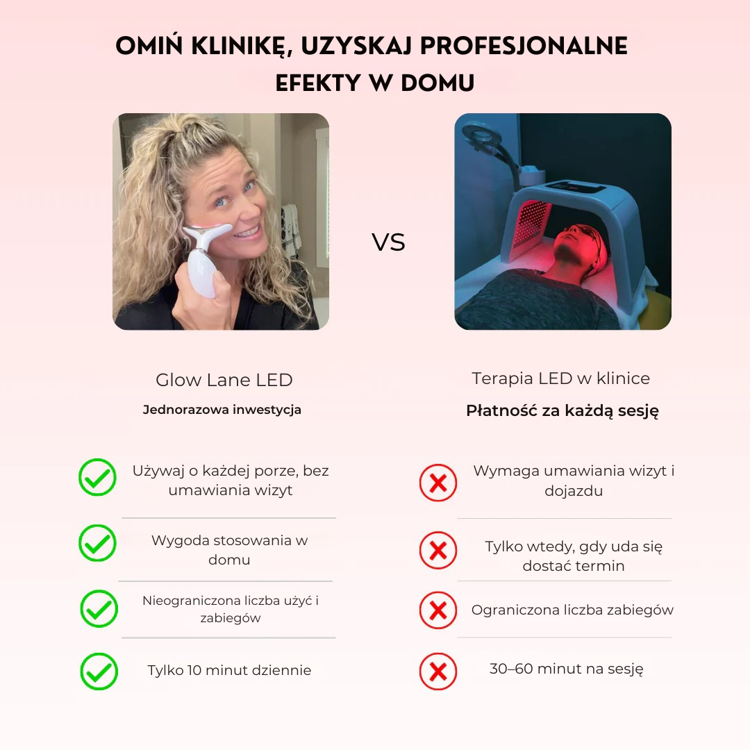 Dla najlepszych rezultatów używaj urządzenia Glowa Lane LED przez 5–10 minut, 5–7 razy w tygodniu.
