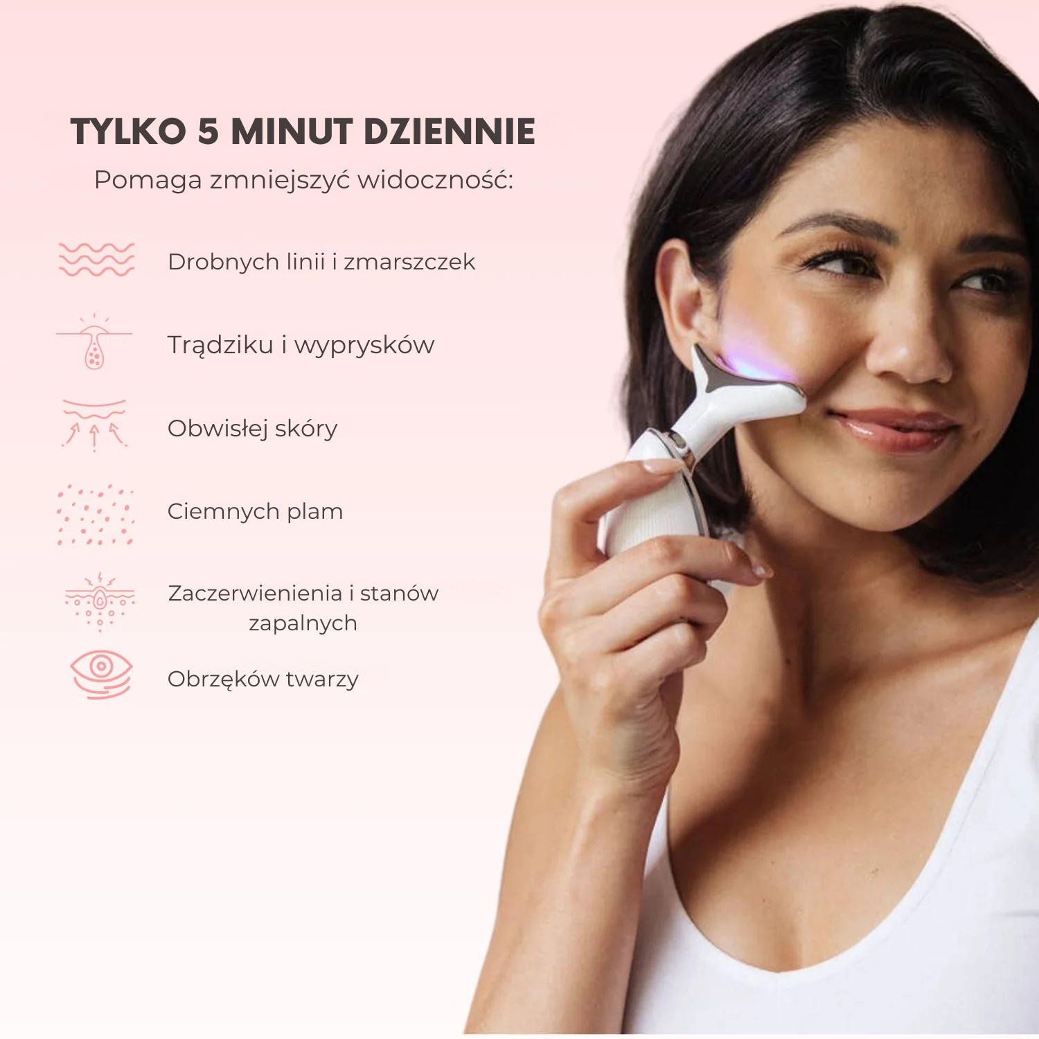 👉 Stosuj urządzenie 1–2 razy dziennie przez 5–10 minut. Zalecamy rozpocząć od 1 sesji dziennie po 5 minut i stopniowo wydłużać czas.
